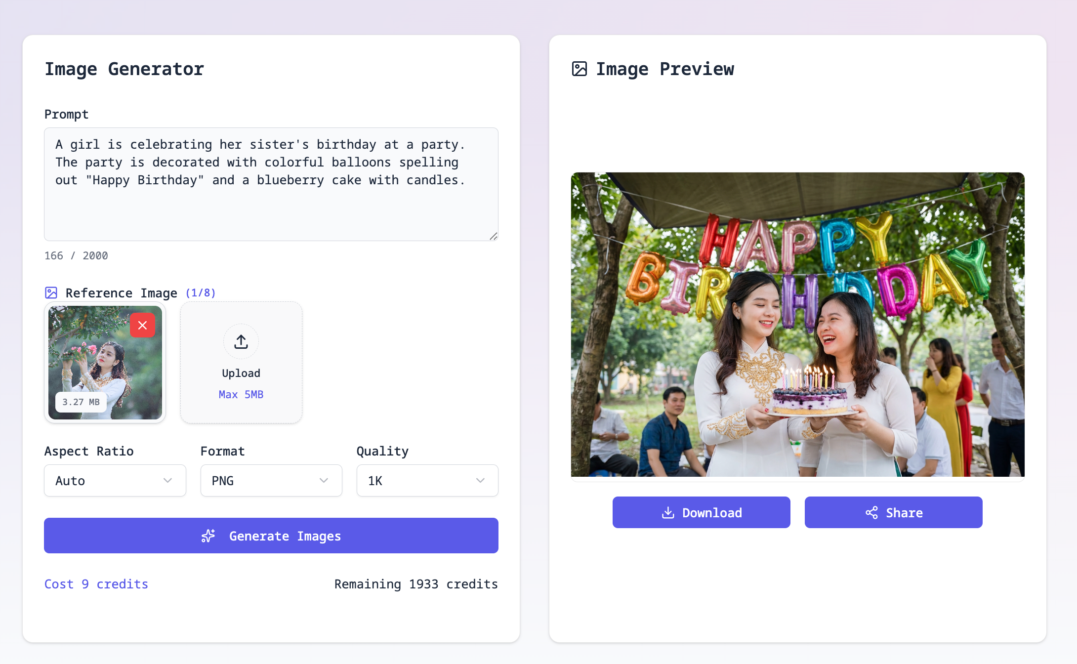 - 🎂 Rich Scenarios: From festive parties to heartfelt family gatherings, create images tailored for every celebration.