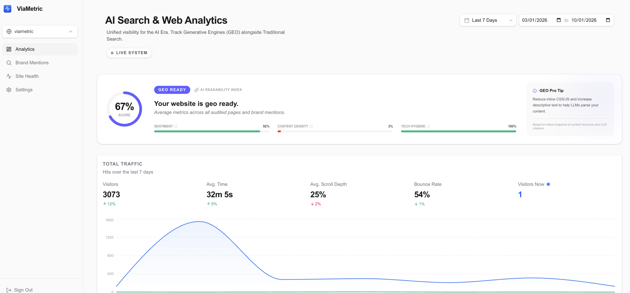 - Comprehensive Analysis: Evaluate the effectiveness of your AI models and their online presence.