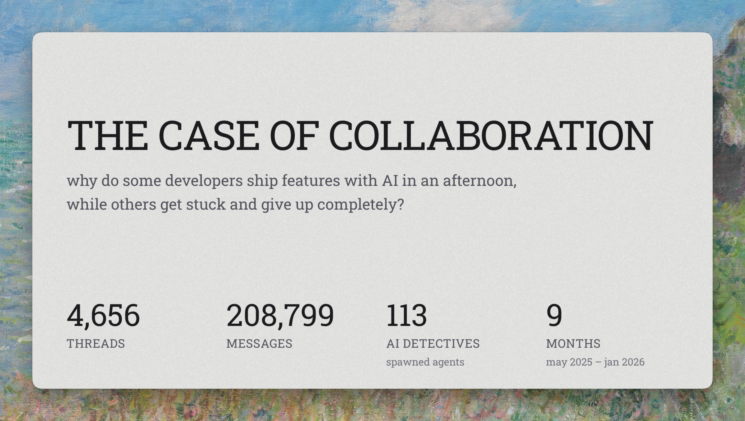 In an era where Artificial Intelligence is pivotal, our latest investigation dives deep into a unique case: over 100 AI detectives collaboratively analyzing conversations to unveil success patterns. This transformative process creates a powerful feedback loop, allowing us to gain insights that reshape our interactions with agents.