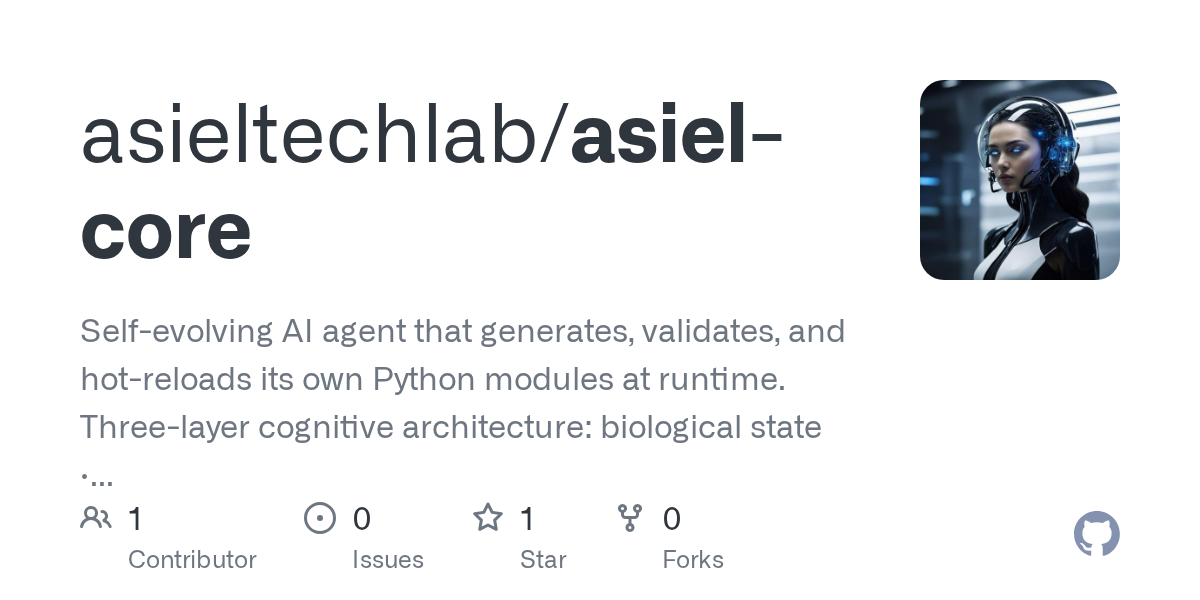Asiel is a groundbreaking self-improving autonomous AI agent that dynamically generates and hot-reloads its own behavior modules in real-time—without human intervention. Here’s what sets Asiel apart: