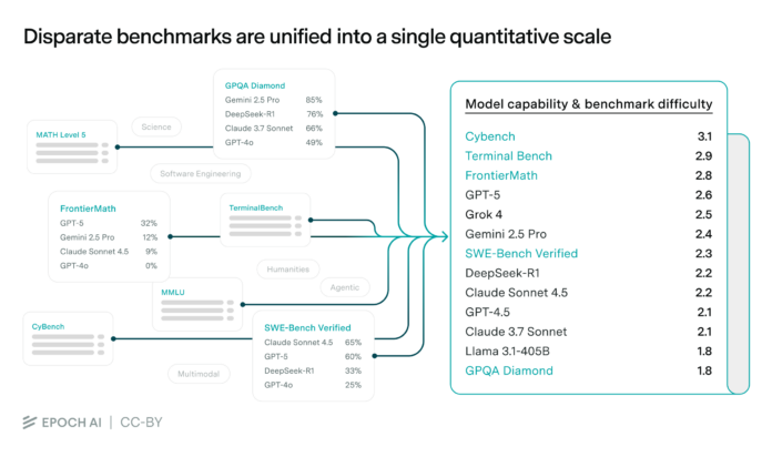 - A Novel Framework: By “stitching together” 40 diverse benchmarks, we create a unified model to better assess AI progress—similar to chess rankings.