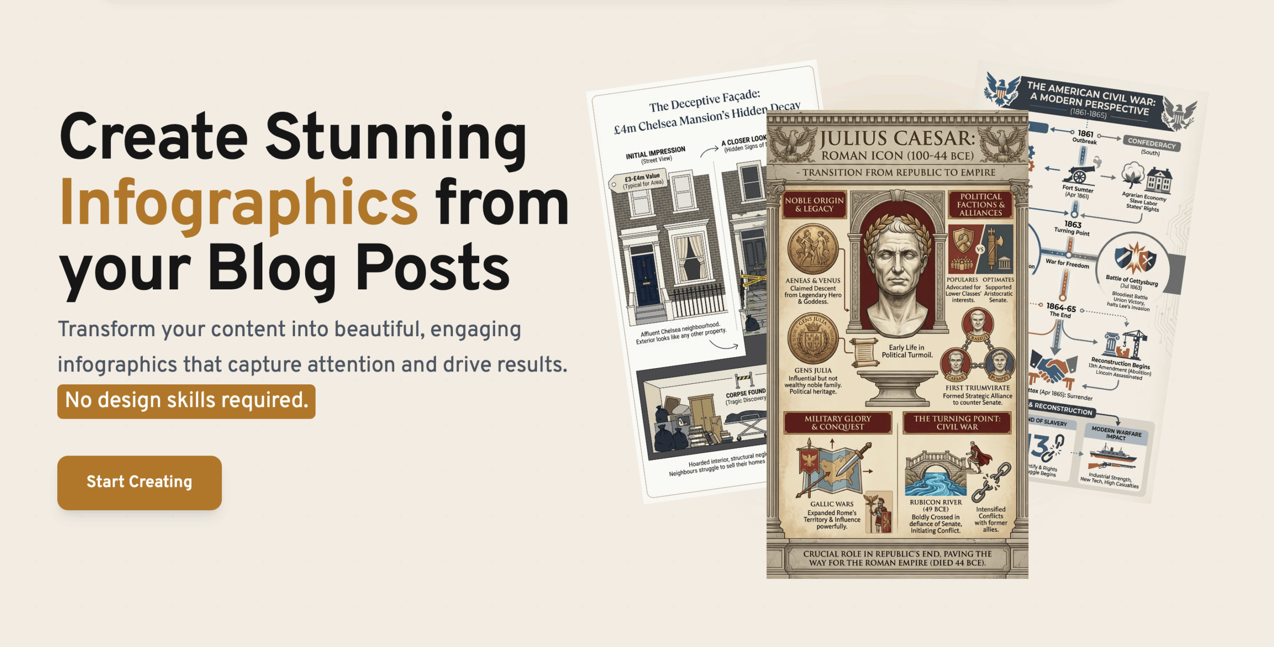 - Seamless Design: Our AI analyzes your content, extracting key insights and automatically generates infographics that match your chosen template.