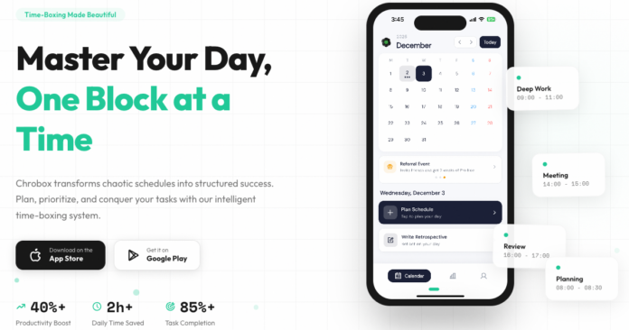 Why Chrobox? Traditional to-do lists often overlook execution. I built Chrobox to convert tasks into real, actionable time, enabling reflection on outcomes for continual improvement.