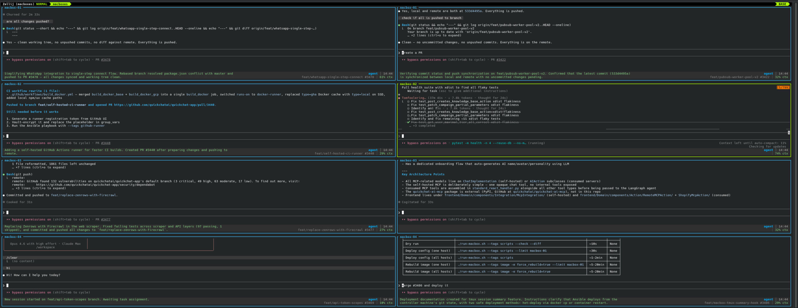 - Live Summaries: After each Claude Code response, a small model generates a 2-3 sentence summary displayed in the tmux status bar.