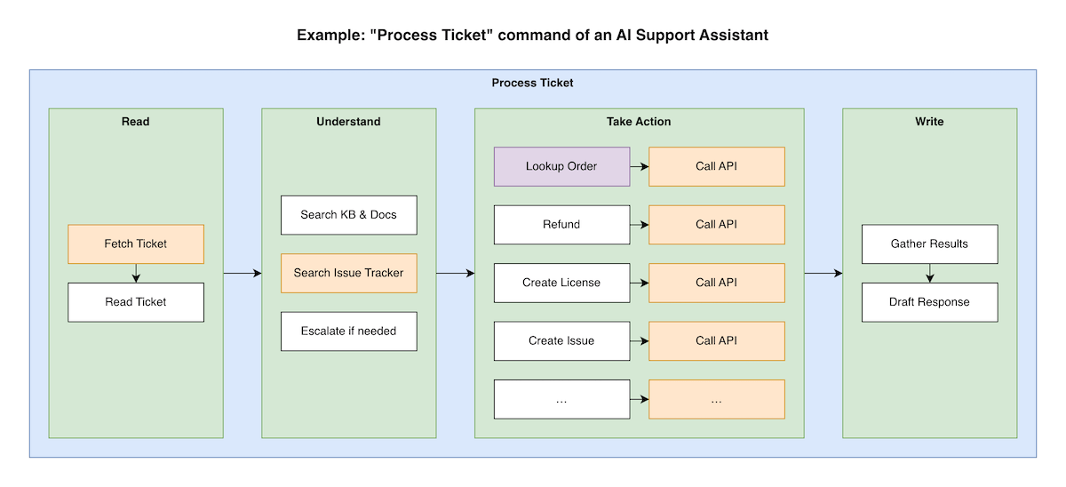 - Commands: Simple prompts that the AI can execute.