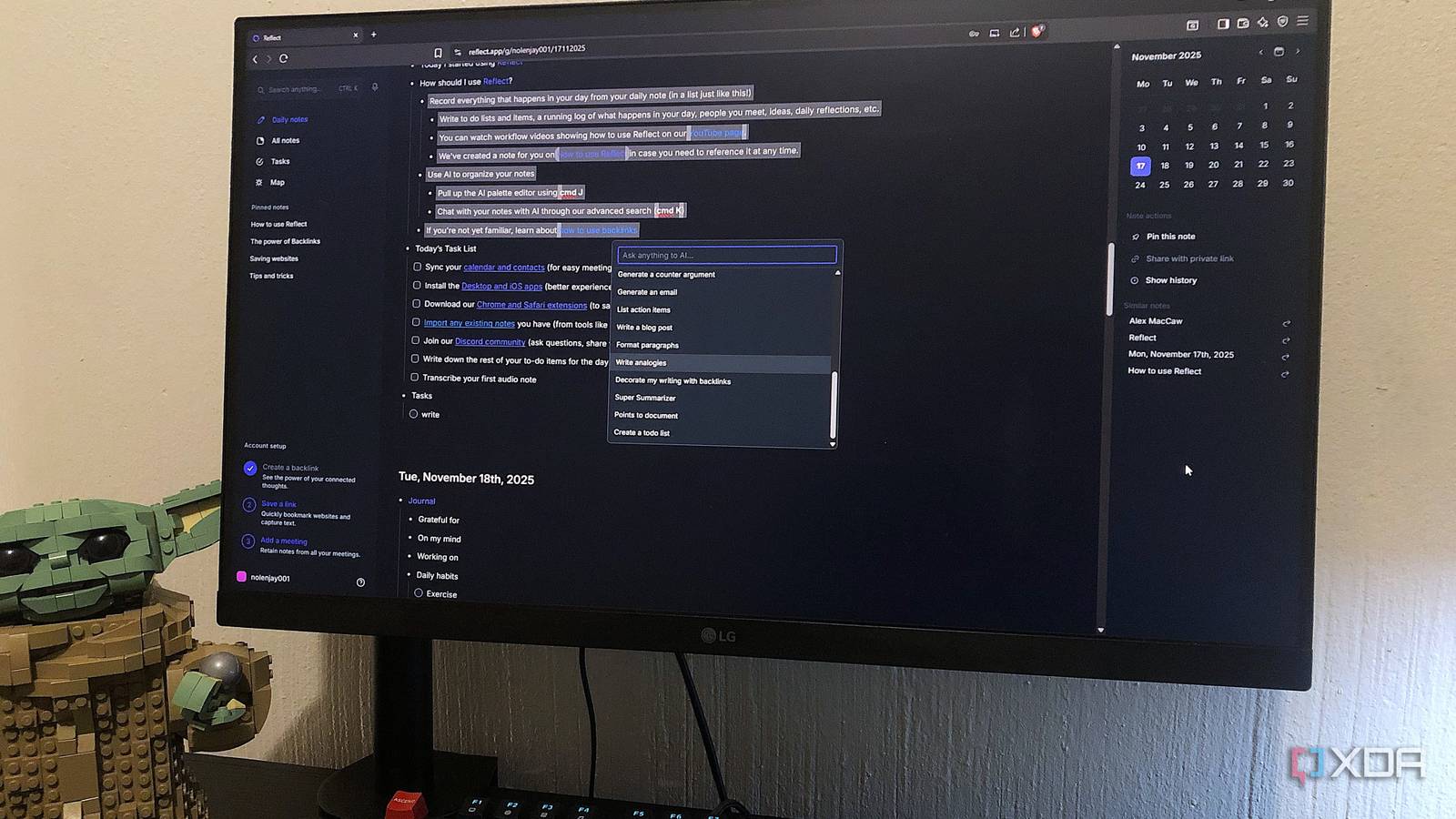 The AI capabilities are particularly impressive, providing tools for summarization, grammar correction, and content generation. Users can interact with AI commands for various tasks, including transcription from meetings. Overall, Reflect elevates the note-taking experience with its unique blend of minimalism and advanced features, making it a must-try for anyone looking to streamline their workflow.