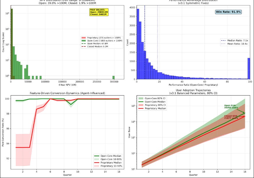 - 91.5% of simulations favored the open-core model.