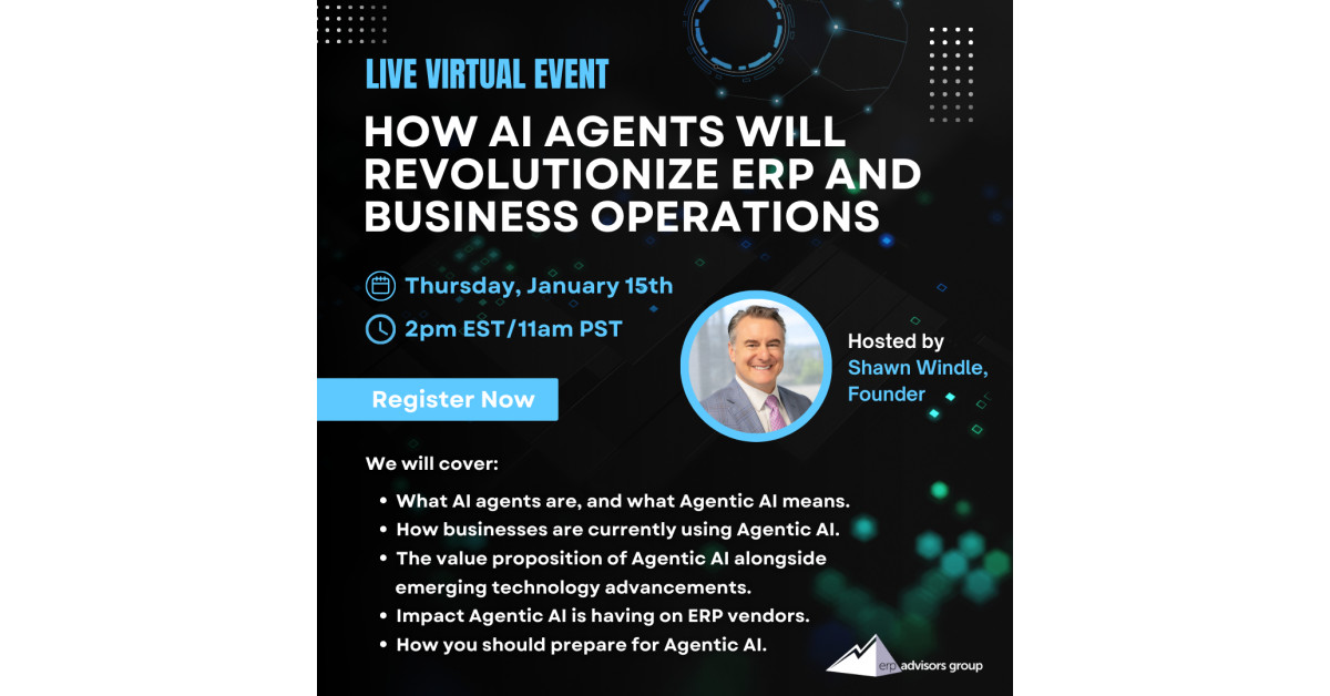 On January 15, 2026, ERP Advisors Group’s Shawn Windle will explore the significance of agentic AI for growing businesses in a live webinar. As a leading expert, Windle will define agentic AI and discuss how it enhances enterprise software investments. This emerging technology is a hot topic among operational and financial executives looking to implement AI strategies effectively. The webinar will cover key areas such as the functionality of AI agents, current applications of agentic AI, its value proposition in line with technological advancements, and its impact on ERP vendors. Attendees will learn how to prepare for the rollout of agentic AI to streamline business operations and maximize software effectiveness.