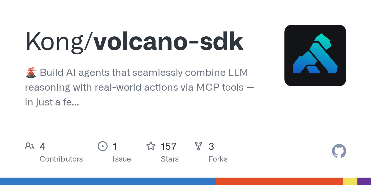 Kong/volcano-sdk: 🌋 Effortlessly Create AI Agents Integrating LLM Reasoning with Real-World Actions Using MCP Tools in Minimal TypeScript.