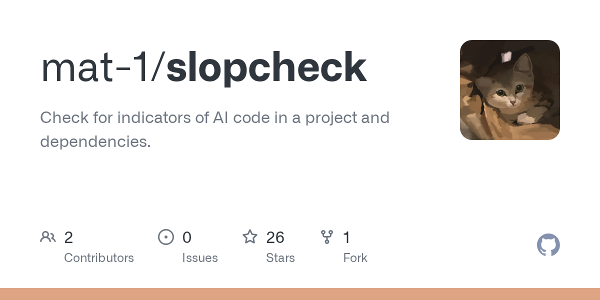 Are you curious if your code or its dependencies are influenced by AI? Meet Slopcheck, a CLI tool designed to unveil the hidden indicators of AI-generated code in your projects.