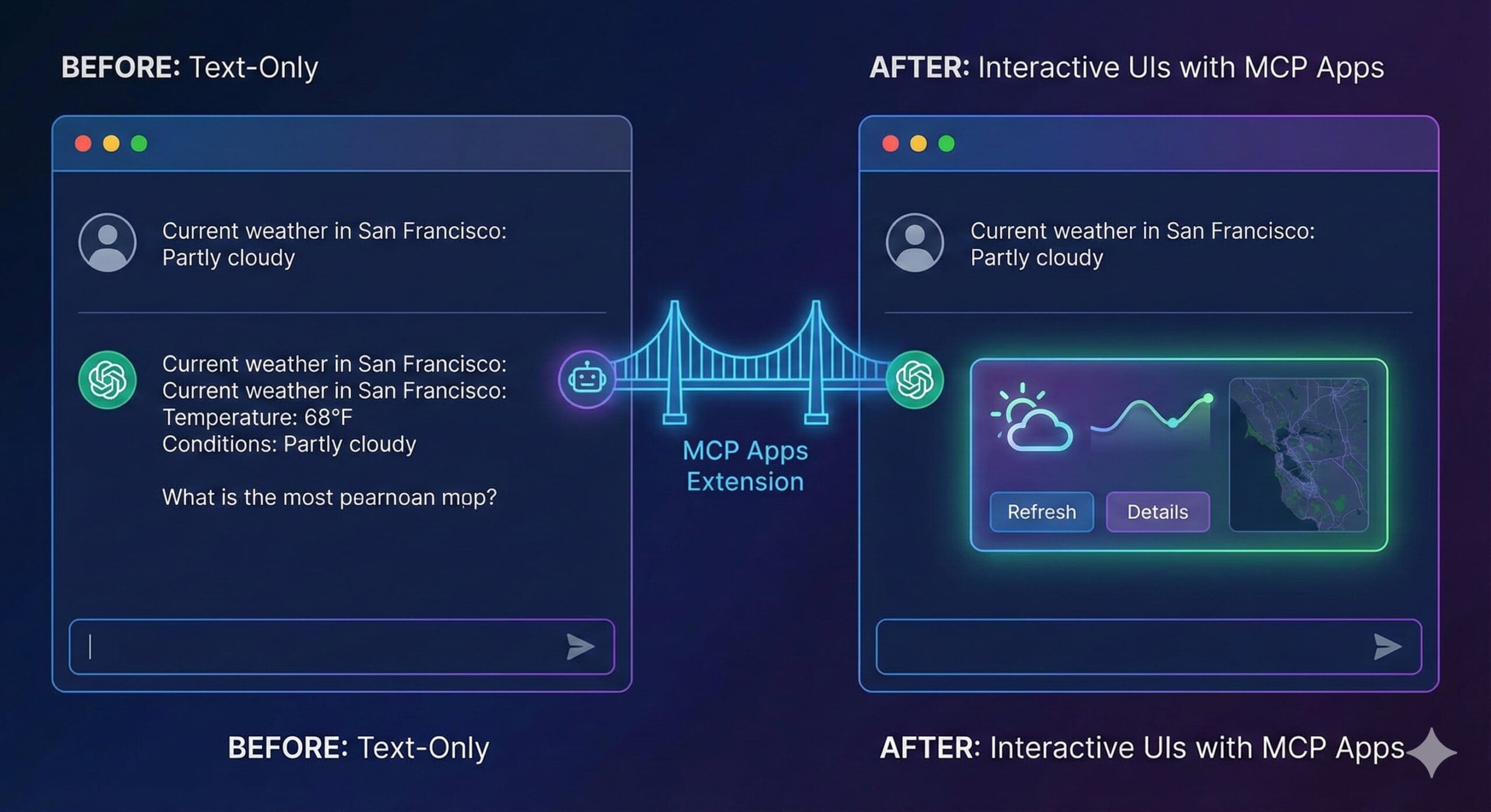 Back in May, I envisioned the potential of AI to generate user interfaces on-the-fly. This vision is now a reality with MCP Apps, an official extension of the Model Context Protocol. This dynamic solution goes beyond text by enabling: