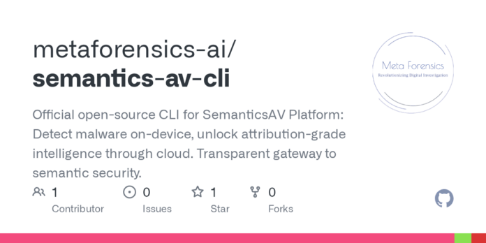 Metaforensics-AI/Semantics-AV-CLI: The Official Open-Source Command-Line Interface for the SemanticsAV Platform – On-Device Malware Detection and Cloud-Based Attribution Intelligence for Enhanced Semantic Security.