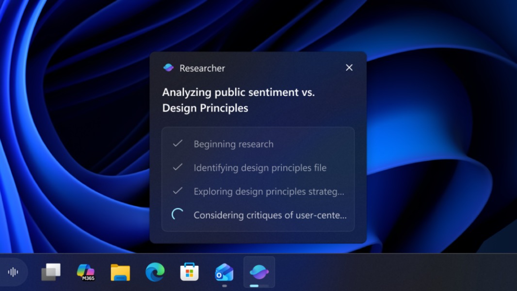 The final Windows 11 preview build of 2023, version 26220.7523, has been released for Insiders in the Dev and Beta Channels, showcasing a new AI agent integration in the taskbar. The Microsoft Researcher agent, part of the Microsoft 365 Copilot, allows users to track tasks without disrupting their workflow, with notifications for completed reports. This feature is initially limited to US Insiders with a Microsoft 365 Copilot license. The update also introduces Agent Launchers, standardizing app interactions with AI agents via the Ask Copilot feature on the taskbar. Additionally, commercial customers will gain access to Microsoft 365 Copilot and AI agents through a unified interface in the upcoming weeks. Other enhancements include a Discover Windows widget offering tips, an improved File Explorer displaying contact icons, and an updated Paint application with a streamlined toolbar. These advancements aim to enhance productivity and user experience on Windows 11.