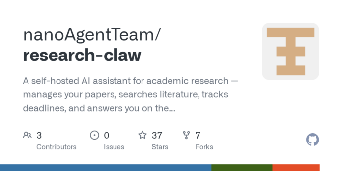 nanoAgentTeam/research-claw: Your Self-Hosted AI Research Assistant – Organize Papers, Explore Literature, Manage Deadlines, and Communicate Through Your Favorite Channels. · GitHub
