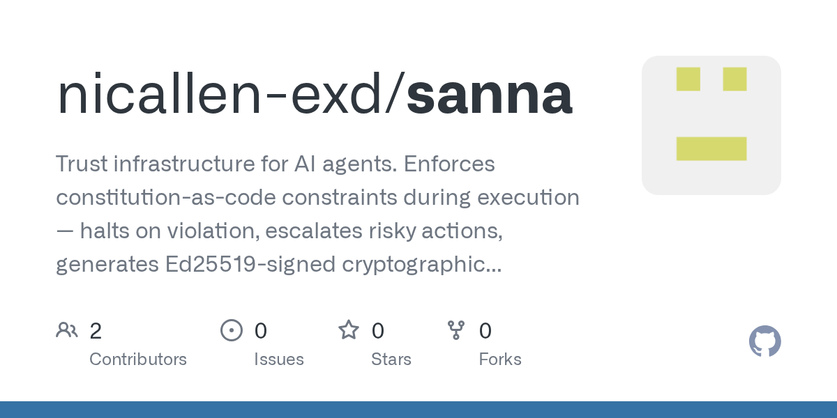 Home AI Hacker News Nicallen-EXD/Sanna: Robust Trust Infrastructure for AI Agents with Constitution-as-Code Enforcement and Secure...