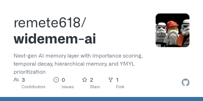 Remete618/WideMem-AI: Advanced AI Memory Layer Featuring Importance Scoring, Temporal Decay, Hierarchical Structure, and YMYL Prioritization · GitHub
