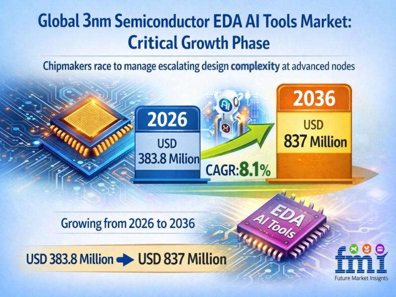 The global 3nm Semiconductor EDA AI Tools Market is poised for substantial growth, projected to rise from USD 383.8 million in 2026 to USD 837 million by 2036, reflecting a CAGR of 8.1%. This shift towards AI-driven Electronic Design Automation (EDA) tools addresses the increasing complexity of advanced semiconductor designs, optimizing power-performance metrics and expediting time-to-market. Key growth drivers include the demand for high-performance chips, intricate integrated circuit designs, and faster design cycles. The market is influenced by trends such as reinforcement learning for layout optimization and AI-assisted verification tools. The U.S. leads this innovative sector, with strong contributions from Taiwan and South Korea. Competitive advantages rely on the accuracy of AI predictions and multi-node integration. As the industry evolves, AI-first EDA platforms are expected to become essential in next-gen chip design, presenting lucrative opportunities in automotive semiconductors and IoT applications. For comprehensive insights, reference the full market research report.