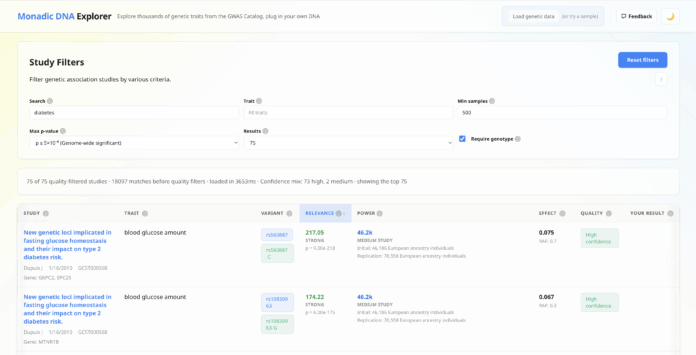 We are thrilled to unveil Monadic DNA Explorer, a groundbreaking tool prioritizing your privacy while enabling you to dive deep into your genetic data. Perfect for enthusiasts and researchers alike, this innovative platform allows you to explore nearly one million genetic trait associations directly in your browser—without ever compromising your personal data.