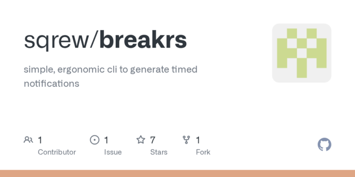 Introducing Breakrs: a simple, ergonomic CLI timer designed for the modern professional. Say goodbye to distractions and hello to focused work sessions. Breakrs takes your productivity to the next level with effortless break reminders.