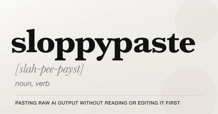 Are you guilty of “sloppypasting”? This term refers to the common practice of sharing raw AI output without thoroughly reviewing or refining it. It’s a simple error that can dilute your message and confuse your audience.